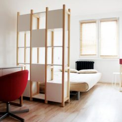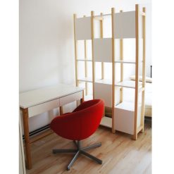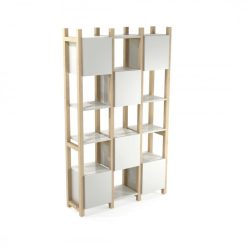 Do produkcji regału wykorzystane jest biała płyta laminowana oraz lite drewno sosnowe, wykończone bezbarwnym lakierem ekologicznym lub jednym z czterech dostępnych kolorów.