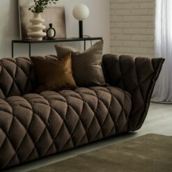 Wysoka estetyka formy – świadczą o niej unikalne przeszycia w kształcie rombów oraz podłokietniki wykończone elegancką, grubą zakładką.