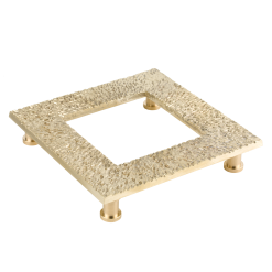 Mosiężny uchwyt meblowy z nieregularnymi żłobieniami w kształcie kwadratu. Wytwarzany tradycyjną technologią odlewniczą w Polsce.