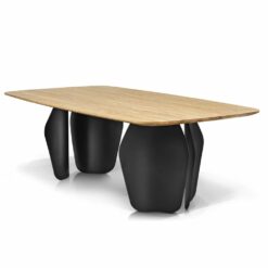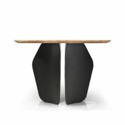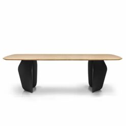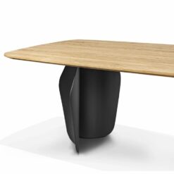Stół Convirio inspirowany jest organicznymi kształtami natury – nawiązuje do nieregularnych kształtów muszli znalezionych w Oceanie Indyjskim. Płynne linie kojarzące się z falami Oceanu czy z linią brzegową zostały zestawione z geometrycznymi, regularnymi kształtami. Styl organiczny jak żaden inny, jest bardzo blisko związany z naturą. Lekkie, opływowe kształty inspirowane kształtami zaczerpniętymi z natury sprawiają, że czujemy się bezpiecznie i komfortowo. Do oryginalnej podstawy stołu został dobrany blat ze starannie selekcjonowanego litego drewna dębowego. Olejowane wykończenie blatu wydobywa piękno słojów drewna i nadaje powierzchni matową teksturę.