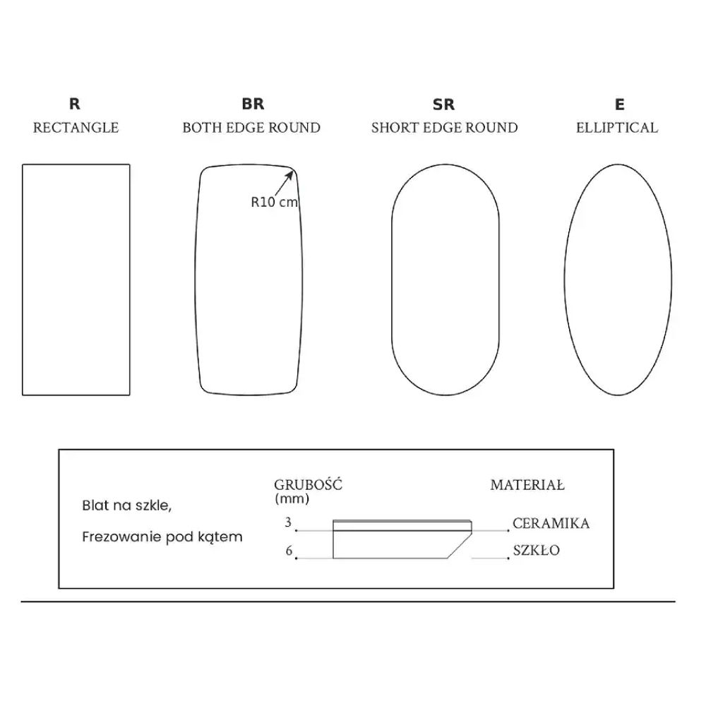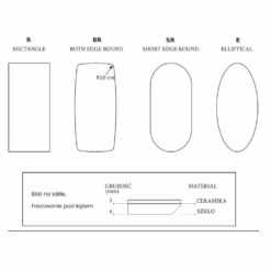 Stół dostępny w 6 rozmiarach oraz w 4 kształtach blatu: