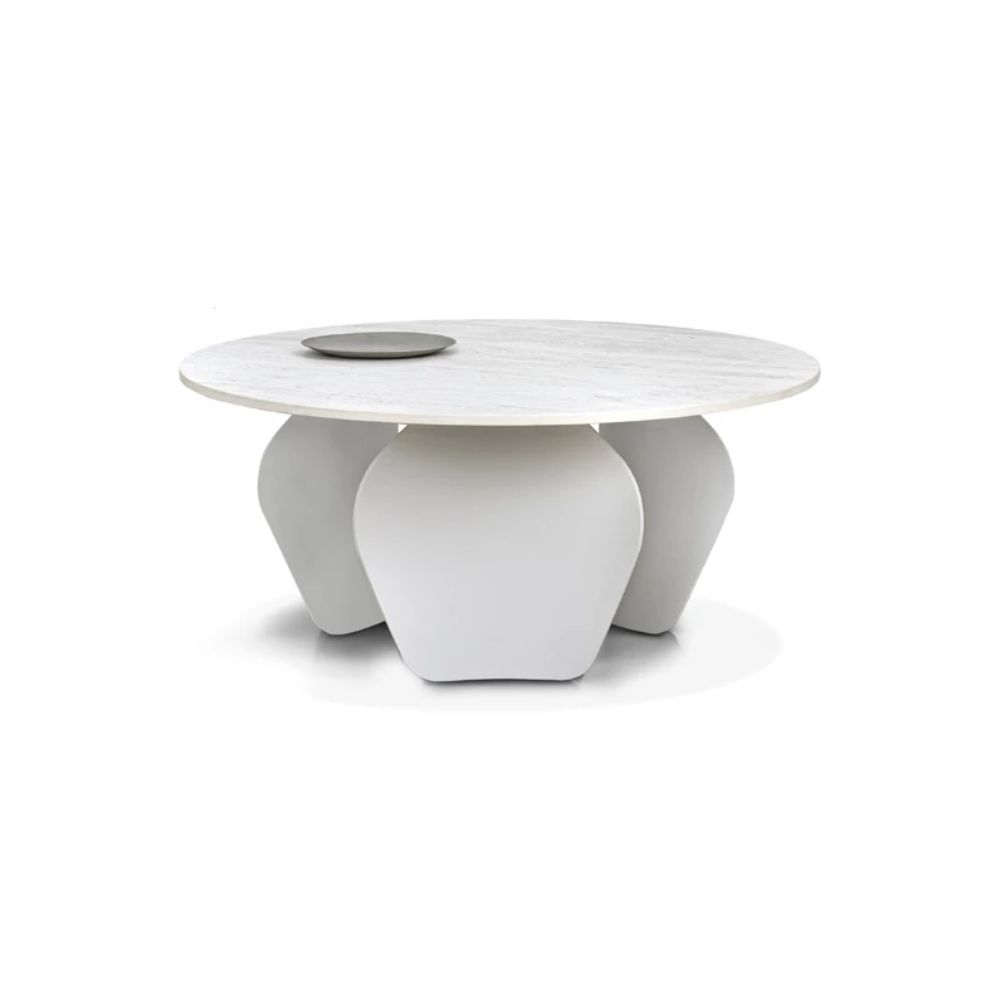 Stolik Convirio inspirowany jest organicznymi kształtami natury – nawiązuje do nieregularnych kształtów muszli znalezionych w Oceanie Indyjskim. Płynne linie kojarzące się z falami Oceanu czy z linią brzegową zostały zestawione z geometrycznymi, regularnymi kształtami. Styl organiczny jak żaden inny, jest bardzo blisko związany z naturą. Lekkie, opływowe kształty inspirowane kształtami zaczerpniętymi z natury sprawiają, że czujemy się bezpiecznie i komfortowo. Do oryginalnej podstawy stolika został dobrany unikatowy spiek kwarcowy Travertino Sand inspirowany naturalnym trawertynem. Ma ciepły, piaskowo-beżowy kolor z delikatnym użyleniem, który wnosi do wnętrza przytulność i jednocześnie luksusowy charakter