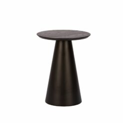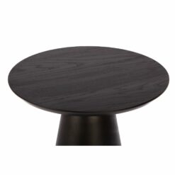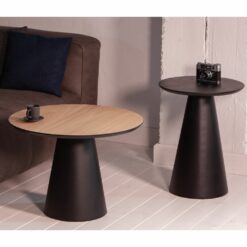 Stolik kawowy CONE z okrągłym blatem osadzonym na metalowym stożku. Blat pokryty jest fornirem dębowym, dostępnym w wykończeniu naturalnym i czarnym.