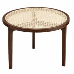 Stolik kawowy Le Roi jest skonstruowany jako geometria ramy z litego dębu, z naturalnym francuskim rattanem montowanym tradycyjnymi metodami. Rattan tworzy półprzezroczyste powierzchnie podkreślające piękną i prostą konstrukcję.