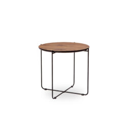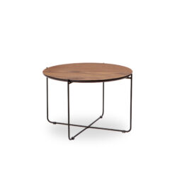 Metalowe, malowane proszkowo nogi tworzą ciekawy kształt. Blat: fornir orzech amerykański.