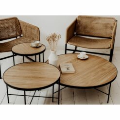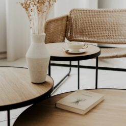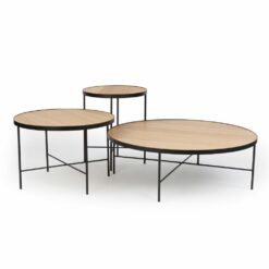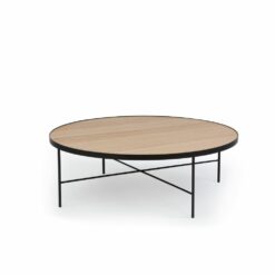 Eleganckie stoliki TRE, blat wykonany z forniru dębowego naturalnego + lakier bezbarwny. Stelaż malowany proszkowo RAL 9005.