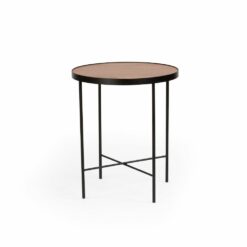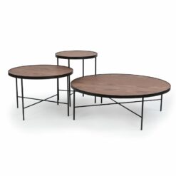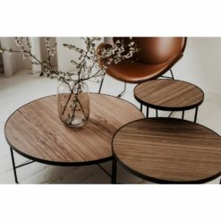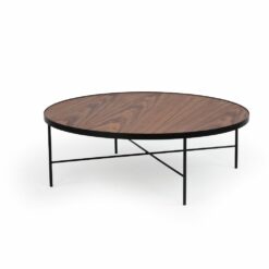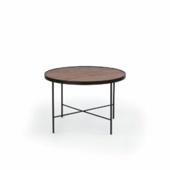 Eleganckie stoliki TRE, blat wykonany z forniru dębowego, orzech amerykański + lakier bezbarwny.  Stelaż malowany proszkowo RAL 9005.