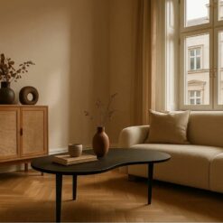 Eleganckie stoliki TRE, blat wykonany z wysokiej jakości laminatu HPL. Stelaż malowany proszkowo RAL 9005.