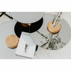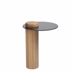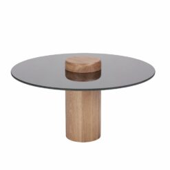 Masywna noga wykonana jest z litego drewna dębowego, a blat z tytanowego lustra 8mm.