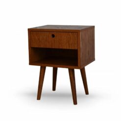 Mebel w całości został wykonany z drewna pokrytego fornirem dębowym. Do produkcji wykorzystujemy tylko naturalne materiały, dlatego poszczególne modele mogą różnić się od siebie układem słoi oraz kolorem. Szafka nocna Bedie + wykończona jest bejcą oraz lakierem.