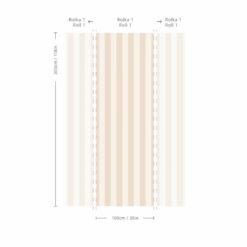 Tapeta Bold Stripe Sand to eleganckie, szerokie pasy w ciepłych, piaskowych odcieniach beżu i jasnego brązu. Doskonale ociepla wnętrze i nadaje mu przytulny, spokojny charakter. Świetnie sprawdzi się zarówno w klasycznych, jak i nowoczesnych aranżacjach salonu, sypialni czy biura.