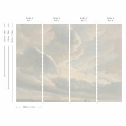 Tapeta Cloudy Sky to subtelna i elegancka dekoracja ścienna, która przynosi do wnętrza delikatne piękno nieba pokrytego chmurami. Ta tapeta, utrzymana w stonowanych, naturalnych kolorach, tworzy atmosferę spokoju i harmonii, idealną do salonu, sypialni czy gabinetu. Dzięki realistycznemu odwzorowaniu chmur, wnętrze zyskuje lekkość i przestronność.