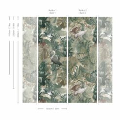 Tapeta Desert Tropics Light Green przeniesie Cię w serce spokojnej dżungli. Delikatna, pastelowa paleta kolorów w połączeniu z eleganckim wzorem roślin i ptaków wprowadza w pomieszczeniu atmosferę harmonii i naturalnego piękna. Idealna dla wnętrz szukających odrobiny natury w subtelnej formie.