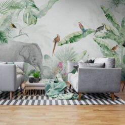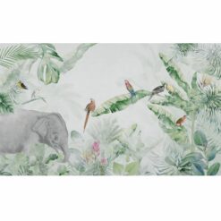 Nowa odsłona bestsellerowego wzoru Jungle, przygotowana w żywych kolorach na jasnym tle. Dominuje kolor soczystej zieleni, oraz żywych barw przyrody tropikalnej. Idealna do każdego rodzaju pomieszczeń.