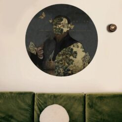 Dots Gentleman Moth to wyrazista dekoracja ścienna w formie koła, która łączy klasyczny portret z motywami przyrody, tajemniczości i delikatnej grozy. Stylizowana sylwetka mężczyzny z roślinnym korpusem i motylami symbolizuje przemianę, ulotność i siłę wyobraźni. Tapeta idealna do wnętrz z charakterem – artystycznych, odważnych, nieoczywistych.