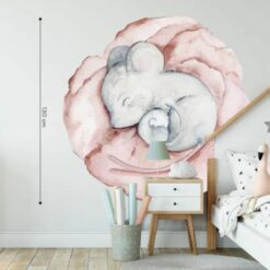 Tapeta Little Nap to wzór dziecięcy namalowany ręcznie przez Paulę Poprawską z @pookys_world. Bajkowy świat myszek, z wyciętymi nieregularnymi kształtami pozwala na wspaniałą aranżacje pokoju dla najmłodszych.