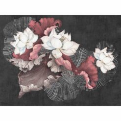 Kona to tapeta o wyrazistym charakterze – kontrast bieli kwiatów lotosu i ciemnego tła przyciąga wzrok i buduje elegancki klimat. Idealna do wnętrz z duszą, gdzie sztuka i natura spotykają się w wyjątkowej harmonii.