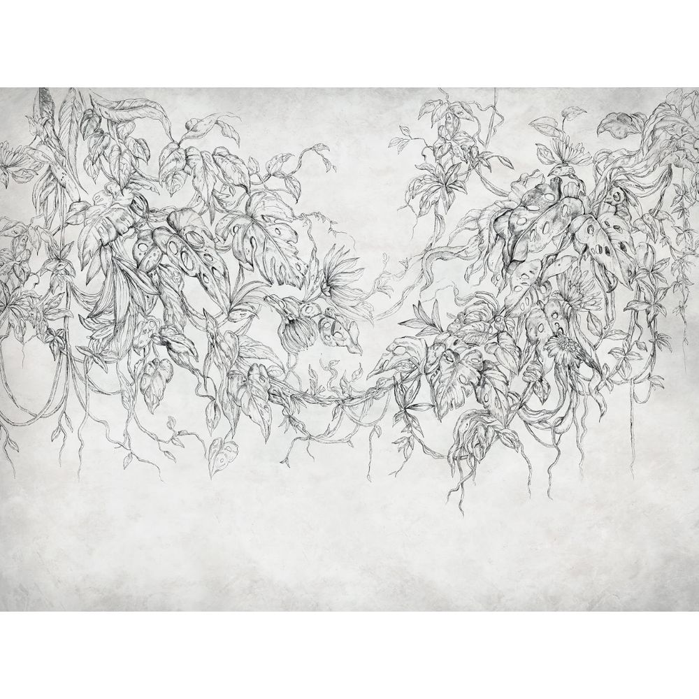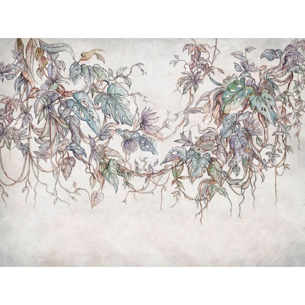 Tapeta Liane to artystyczna interpretacja bujnej roślinności, która zwisa lekko z górnych partii ściany niczym egzotyczna girlanda. Delikatne, akwarelowe liście i pnącza w subtelnych odcieniach fioletu, zieleni i sepii ożywiają przestrzeń, nie dominując jej. Tapeta idealna do wnętrz inspirowanych naturą, boho i stylem vintage – tworzy nastrój spokoju i wyrafinowanej elegancji.