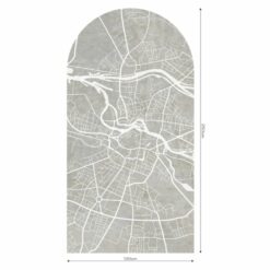 Tapety w kształcie łuku, przygotowane zostały jako dekoracja o wymiarze 130 cm szerokości na 250 cm wysokości. Łuk produkowany jest na poliestrowym materiale samoprzylepnym o strukturze płótna – Canvas Sticker.