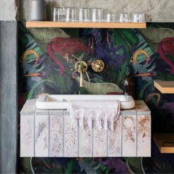 Tapeta będąca istną bombą energetyczną dla wnętrz. Niebanalna kolorystyka, która tchnie życie w nawet najbardziej ponurą przestrzeń. Oryginalny tropikalny wzór składający się z finezyjnej roślinności, spośród której wyłaniają się fikuśne pelikany. Stylistycznie doskonale wpasowuje się w egzotyczne i nowoczesne wnętrza, ale doskonale odnajdzie się w innych kompozycjach nadając charyzmy.