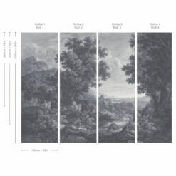 Picturesque Valley of Serenity Blue to tapeta Wallcolors, która zaprasza do świata klasycznego piękna i natury. Jej monochromatyczny krajobraz w odcieniach serenity blue przekształca ściany w artystyczne płótno, gdzie czas zdaje się zatrzymać. Idealna dla wnętrz vintage, jak i nowoczesnych przestrzeni szukających głębi i charakteru.
