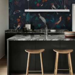 Tapeta Teal Blue Garden to wzór inspirowany naturą, przedstawiający piękne, kolorowe kwiaty i liście na tle głębokiego turkusy. Kolorystyka turkusowego tła i zielonych roślin doskonale harmonizuje ze sobą, tworząc subtelny i elegancki efekt. Tapeta ta będzie idealna dla osób, które cenią sobie piękno i harmonię natury oraz chcą wprowadzić do swojego domu elementy stylu boho lub vintage. Tapeta wykonana jest z trwałego i łatwego w montażu materiału, co sprawia, że jest to idealne rozwiązanie dla osób poszukujących szybkiego i skutecznego sposobu na odświeżenie swojego wnętrza.