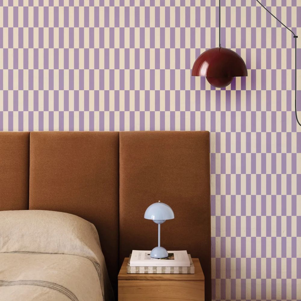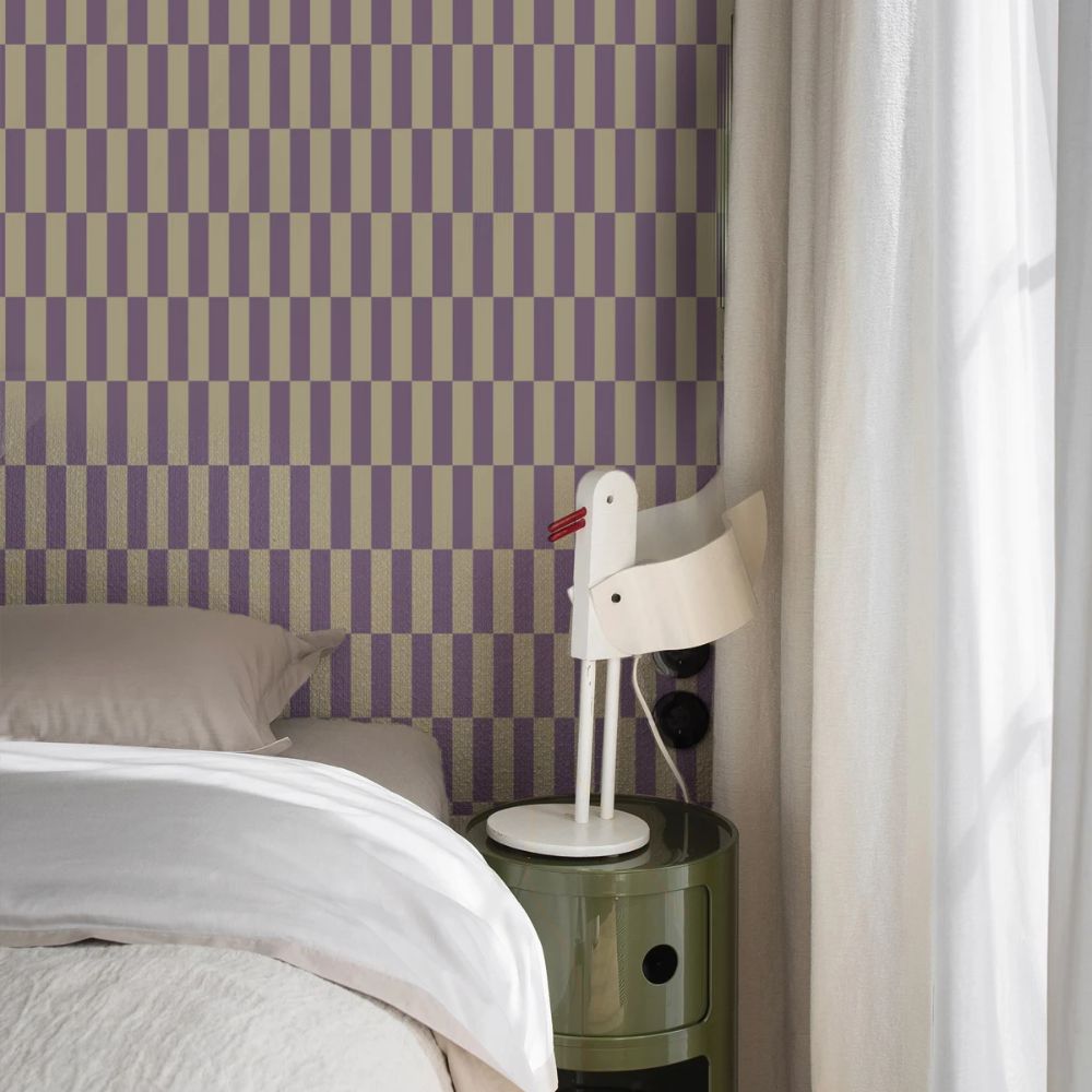 Delikatność fioletu w geometrycznym rytmie. Tapeta Tetris Stripe Lilac łączy lawendowe i liliowe pasy w harmonijny, nowoczesny wzór inspirowany estetyką retro. To idealny wybór do sypialni, pokoju dziecka czy przestrzeni, w której liczy się subtelny kolor i spokojna forma.