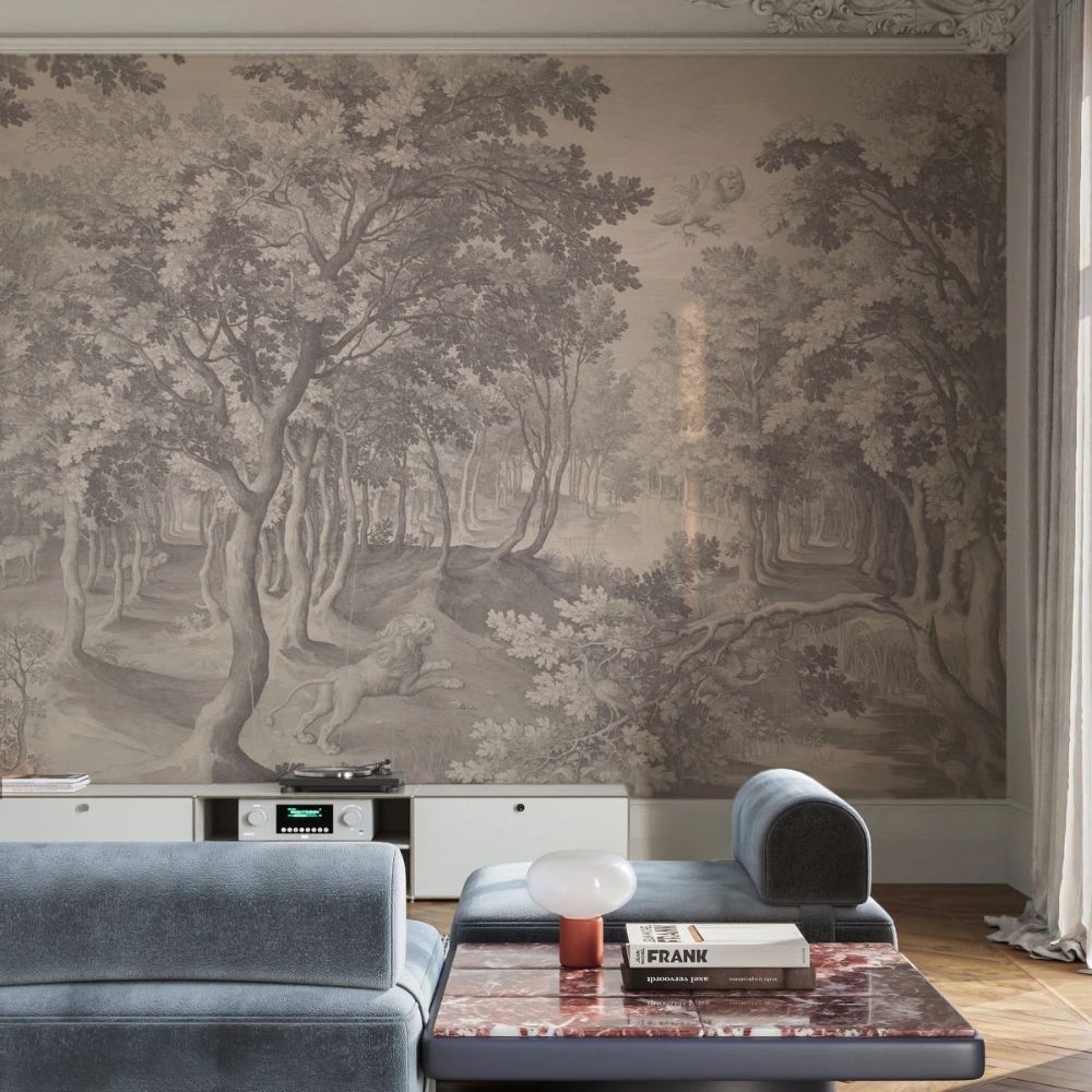 Timeless Trees – Beige to tapeta o eleganckim, klasycznym charakterze, inspirowana dawnym rycinowym pejzażem leśnym. Utrzymana w stonowanej palecie beżu i sepii, tworzy spokojne i wyrafinowane tło do wnętrz, które cenią harmonię, ciszę i naturalne piękno. Idealna do salonów, sypialni i przestrzeni z nutą vintage.