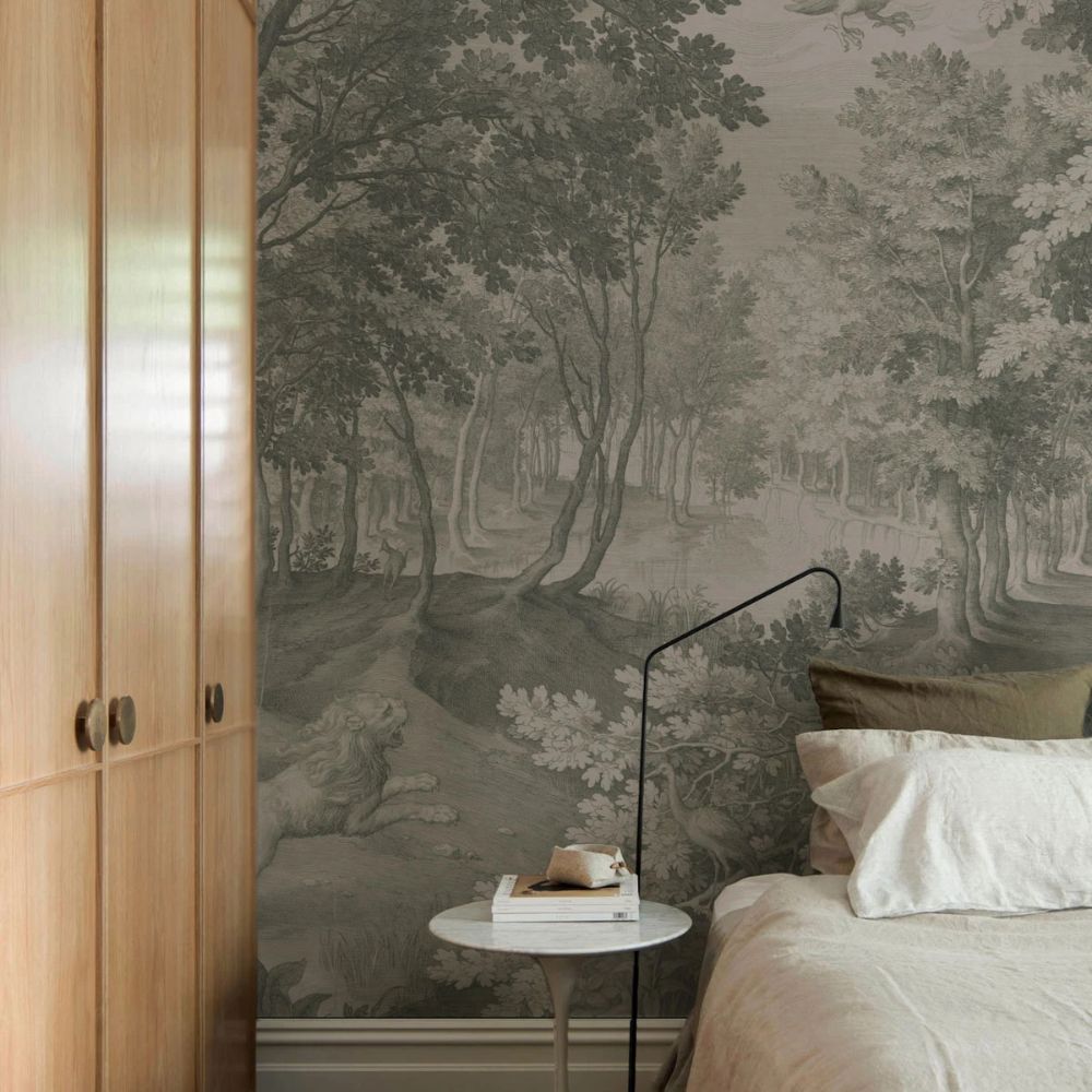 Timeless Trees – Green to tapeta w stylu klasycznej ryciny, przedstawiająca spokojny leśny krajobraz w tonacji zgaszonej zieleni. Detaliczna kreska, subtelna głębia i nostalgiczną atmosfera sprawiają, że wzór doskonale odnajduje się w eleganckich, ponadczasowych wnętrzach. Idealna do sypialni, salonu lub biblioteki z duszą.