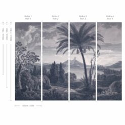Tropical Volcano Vista Blue to tapeta Wallcolors, która przeniesie Cię do egzotycznego świata pełnego zieleni i wulkanicznych krajobrazów. Monochromatyczne odcienie niebieskiego mieszają się z delikatnymi konturami palm i bujnej roślinności, tworząc spokojną, ale pełną wyobraźni przestrzeń. To idealny wybór dla wnętrz, które pragną dodać odrobinę tropikalnego spokoju.