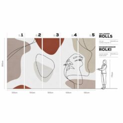 Layla Taupe to wzór w kolekcji Modern, wykonany w modnej technice one-line. Twarz kobiety w minimalistycznym stylu, narysowana jedną, czarną linią, z dodatkowymi deseniami w najmodniejszych trendach kolorystycznych. Tapeta utrzymana jest w kolorze taupe- beż złamany szarością , ciepłe bordo, delikatna szarość tła.