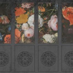 Wzór z kolekcji Classic, inspirowany wielką sztuką. Tapeta powstała z połączenia zdjęć zdobnych sztukaterii, z zabytkowych pałacy i dworków oraz reprodukcji obrazu XVII w malarza, Abrahama Mignona. Zaproś sztukę do swojego wnętrz. Tapeta wspaniałe prezentuje się na strukturze betonu oraz craft dodając wnętrzu elegancji.