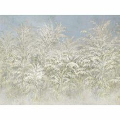 Tapeta Whisper przenosi Cię w świat spokoju i lekkości. Miękkie, kremowe liście rozmywają się w delikatnej mgle, unosząc się na tle łagodnego błękitu. Ta subtelna kompozycja wnosi do wnętrza uczucie harmonii, ciszy i naturalnego światła – jak poranna mgła nad tropikalnym ogrodem.