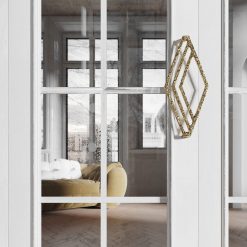 Charakterystyczny wzór inspirowany stylem art deco to połączenie geometrii z subtelną strukturą. W zależności od wykończenia, ViArte może być idealnym uzupełnieniem wnętrz klasycznych, glamour, orientalnych czy kolonialnych. Mosiężny uchwyt meblowy wytwarzany tradycyjną technologią odlewniczą w Polsce.