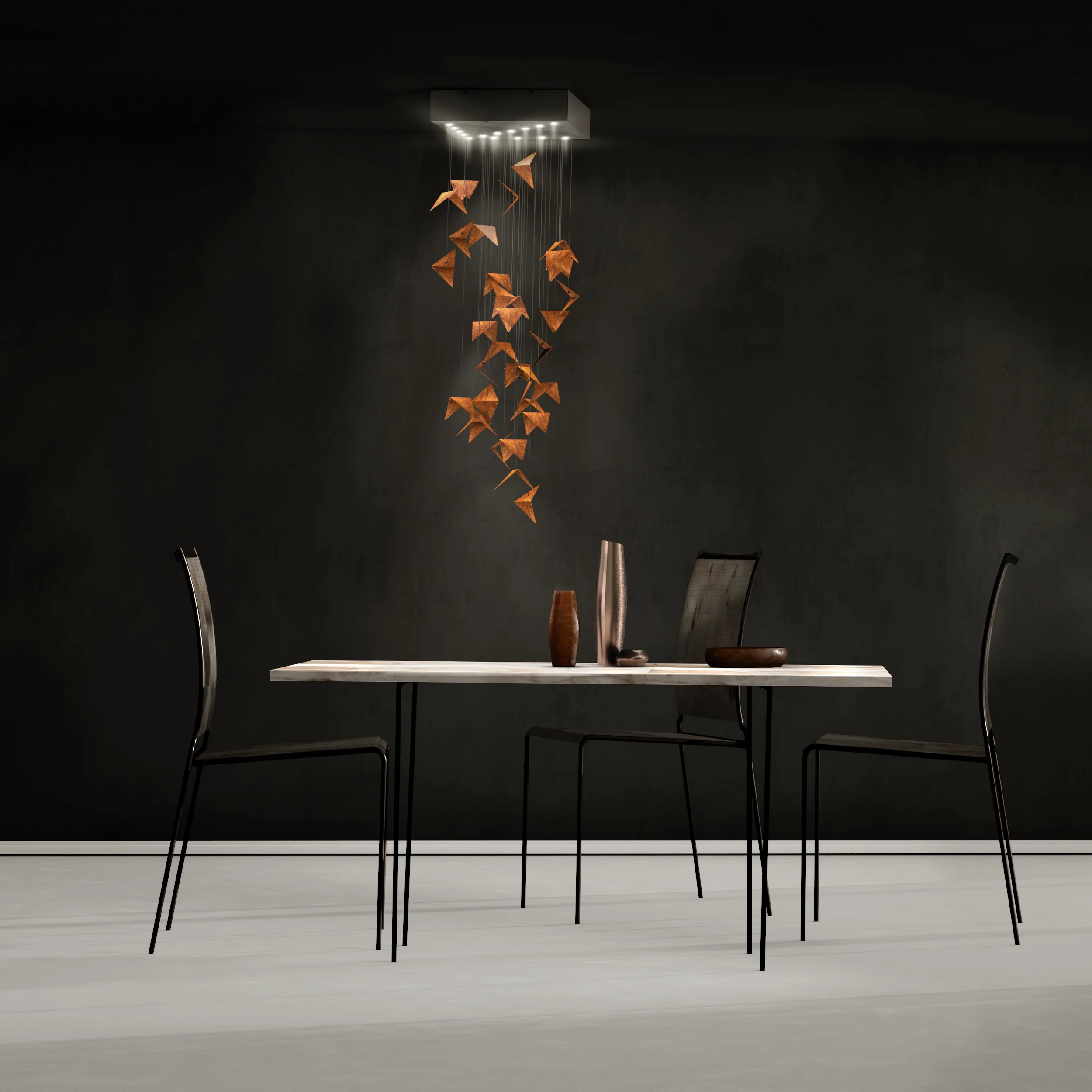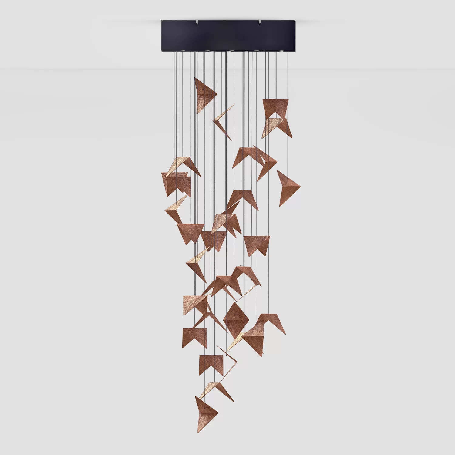 Stworzone by zachwycać połączeniem nowoczesnych technologii. Światło wydobywa z materiału niezliczoną ilość odcieni oranżu, miedzi, brązu i złota. Żyrandol Portal łączy w sobie sztukę, niepowtarzalny design i polskie wzornictwo.