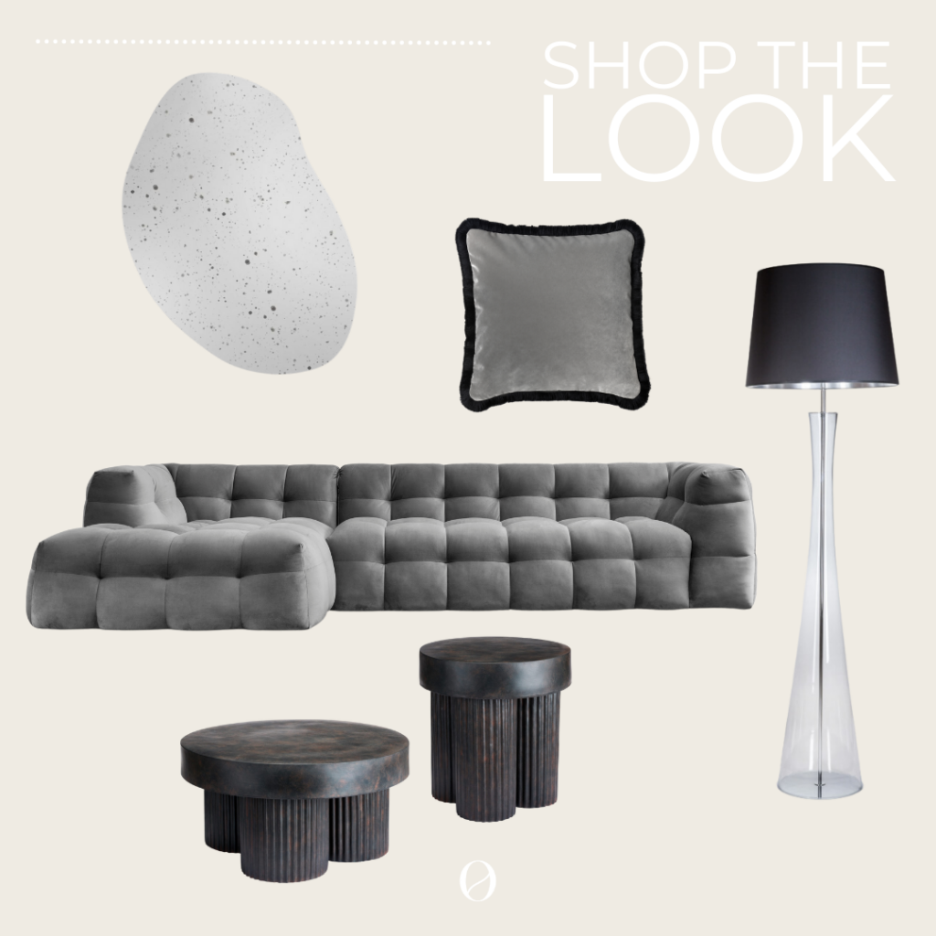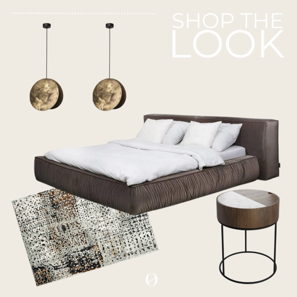 Niezwykle stylowe połączenie w dość ciemnej kolorystyce. Barwy ziemi, złota i rudość przełamana delikatnym akcentem w postaci tapety drukowanej na wymiar z motywem liści. Wygodny Fotel LEAH oraz nietuzinkowe stoliki kawowe GEAR niezaprzeczalnie dołączają do grona najchętniej wybieranych przez Was produktów.